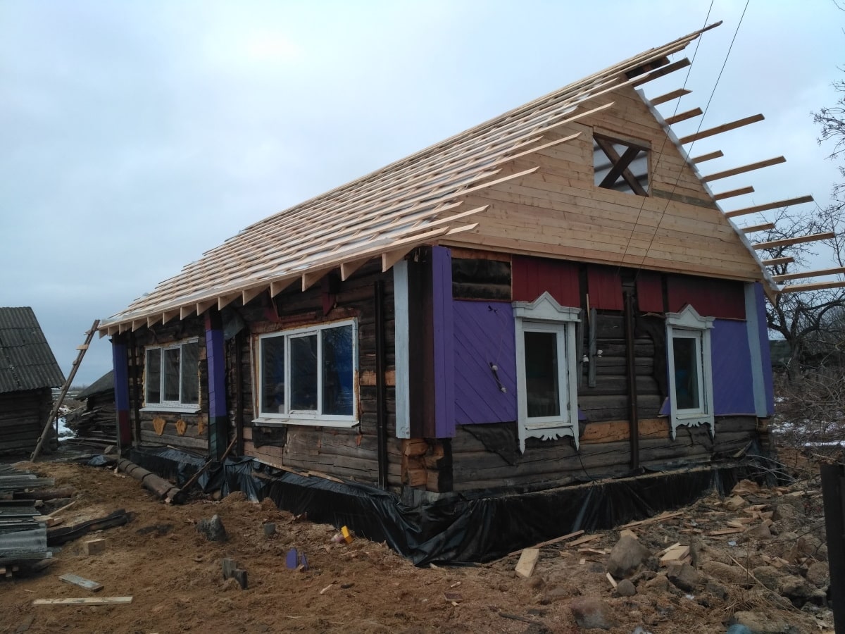 Реконструкция крыши заняла 12 дней. В будущем запланирована частичная реконструкция деревянного дома.